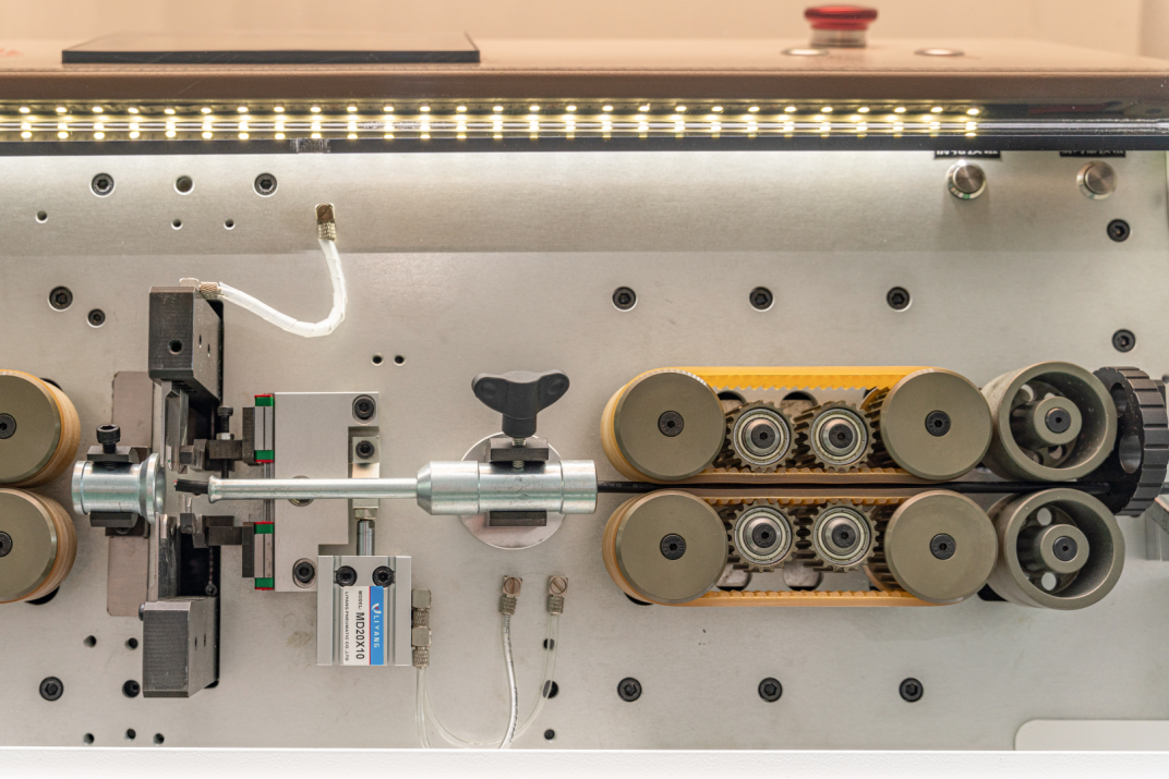 特點(diǎn)說(shuō)明:1、機(jī)器采用進(jìn)口原件,完成切斷電線、剝皮、動(dòng)作準(zhǔn),操作簡(jiǎn)單,性能穩(wěn)定,省人工。2、壓線采用皮帶傳輸、切刀深度采用自動(dòng)調(diào)整,簡(jiǎn)易快捷。3、全程剝皮長(zhǎng)度直接由觸摸屏...